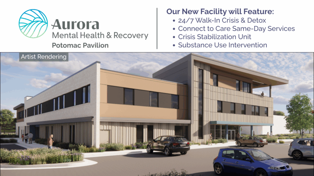 Opening in early 2026, the Potomac Pavilion aims to be the ultimate one-stop access point for mental health and substance use care in Aurora. This walk-in access clinic is designed to address the needs of the community by simplifying the way individuals and first responders access crisis services and other behavioral health treatment. This 24/7 facility will provide same-day service and referrals for both inpatient and outpatient mental health and substance use treatment.